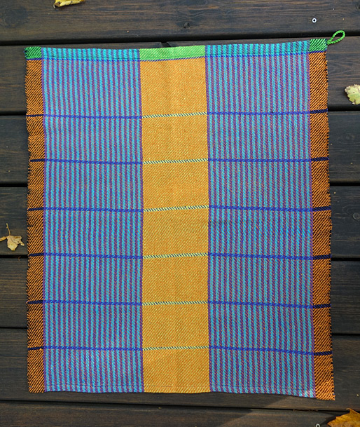 Beim nächsten Handtuch wurde die Trittfolge verändert und bei gleicher Farbfolge entstand so das Pinwheel-Muster in den vier Ecken.