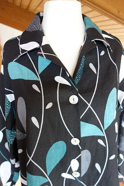 Immer wieder kaufe ich interessant gemusterte loppis-Gardinen und lege sie zu meinen Stoffvorräten. Als ich jetzt im August in Deutschland war, habe ich mir aus zwei schwedischen Gardinenlängen eine leichte Jacke genäht.